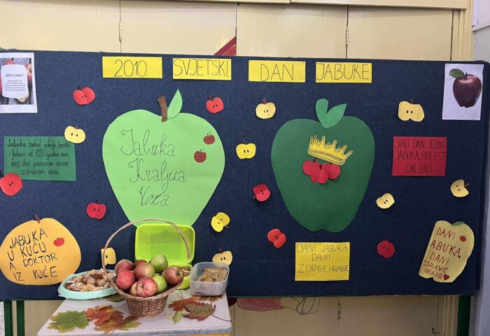 Nizom aktivnosti obilježili smo Dan jabuke. Cilj je bio ukazati na značaj konzumiranja jabuke u svakodnevnoj ishrani. U prilogu samo neke od aktivnosti.