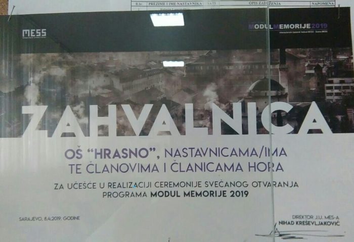 U subotu, 8.6.2019. godine učenici sedmih razreda sa svojim nastavnicima posjetili su Memorijalni centar Srebrenica – Potočari, Spomen obilježje i mezarje za žrtve genocida iz 1995. godine. Ispred Musale, centralnog dijela mezarja, kustos je učenicima održao historijski čas. Nakon toga slijedio je obilazak fabrike akumulatora, stalne postavke muzeja Srebrenički genocid i gledanje dokumentarnog filma. Na […]