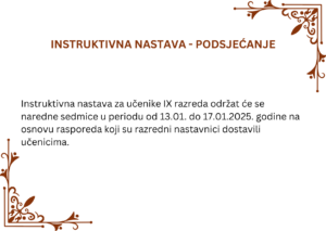 10 siječanj Instruktivna nastava – podsjećanje za učenike IX razreda Informacije, Novosti Leave a comment