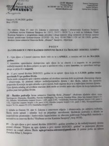 ZA UPIS DJECE U PRVI RAZRED OSNOVNE ŠKOLE ZA ŠKOLSKU 2020/2021. GODINU