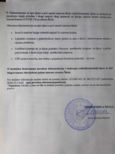 O terminina dostavljanja navedene dokumentacije i testiranja roditelji/staratelji djece će biti blagovremeno obaviješteni putem internet stranice Škole.