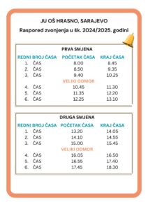 Komentari isključeni za Raspored zvonjenja u šk. 2024/2025. godini